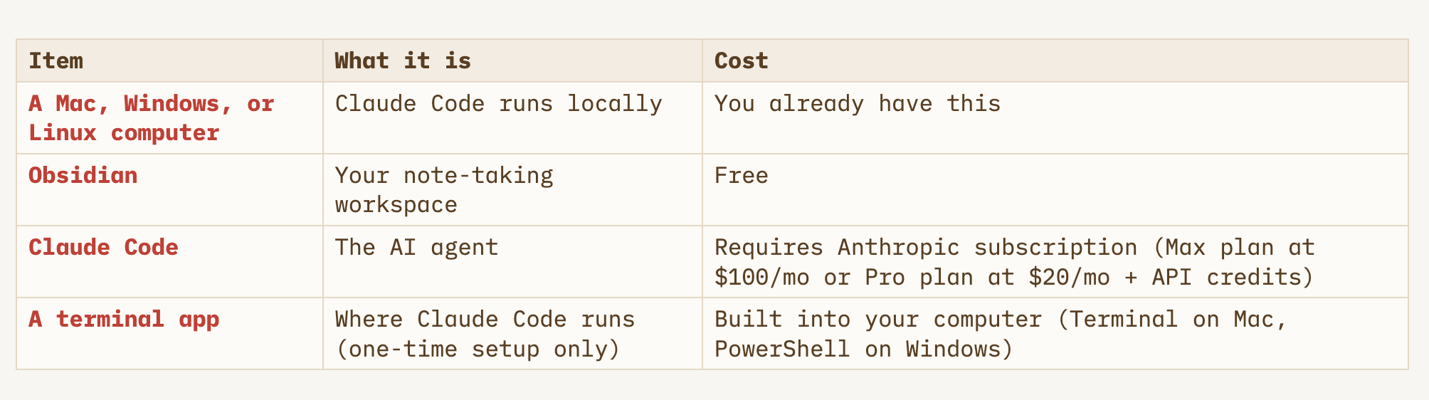 💡 If you have a Max subscription ($100/mo), you get Claude Code included. If you have a Pro subscription ($20/mo), you can use it with API credits. Check Anthropic’s pricing page for current details.