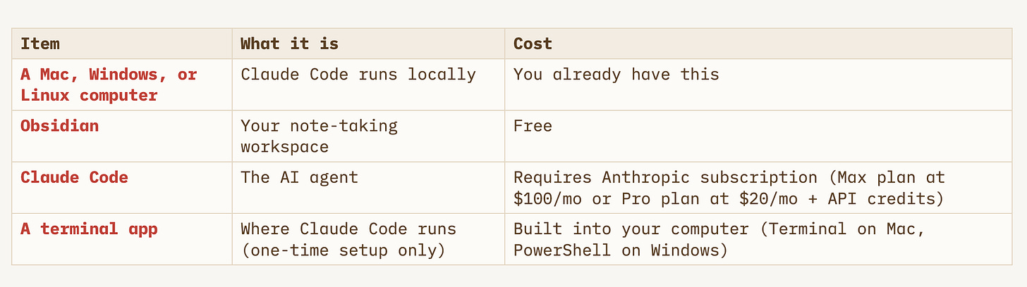 Obsidian works on mobile, but Claude Code currently requires a desktop computer (Mac, Windows, or Linux) with a terminal. You can edit your notes on mobile and use Claude Code when you’re at your desk.